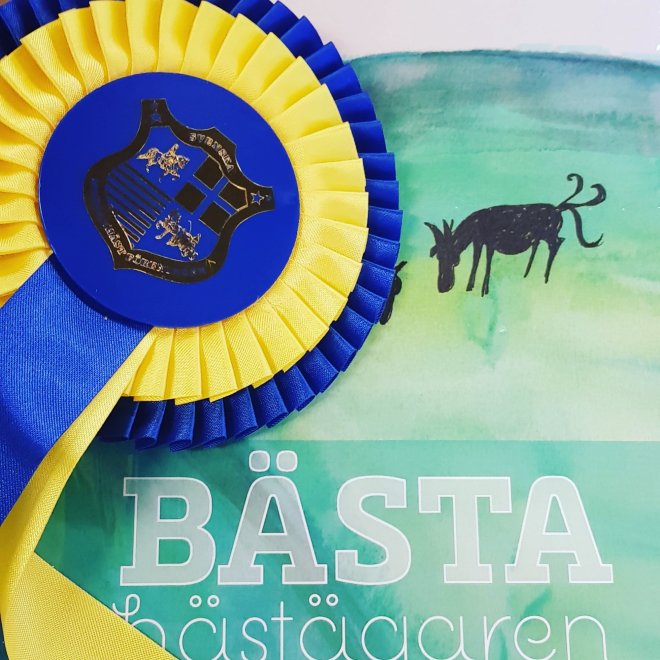 Det var väldigt roligt att se klassen. Till att börja med insåg man snabbt hur svår banan var. Det fanns många som fick rejäla problem på de olika hindren. Då förstod man också hur duktiga de som vann var – för då såg det plötsligt lätt ut. Och man kunde verkligen se vilket samarbete som fanns mellan häst och ledare. Så det värmde rejält att få äran att dela ut blågula rosetter och boken till vinnarna – ett pris för vinnaren bland unghästarna och ett pris för de vuxna hädtarna. De kanske inte var de som behövde boken allra mest faktiskt, men kanske hittar de något nytt och fick någon ny infallsvinkel i sina framtida framgångar med sina hästar tack avre den. Ingen är ju fullärd. Och ju mer vi lär oss, desto mer förstår vi att vi har att lära och att bli påmind ibland är heller aldrig fel.