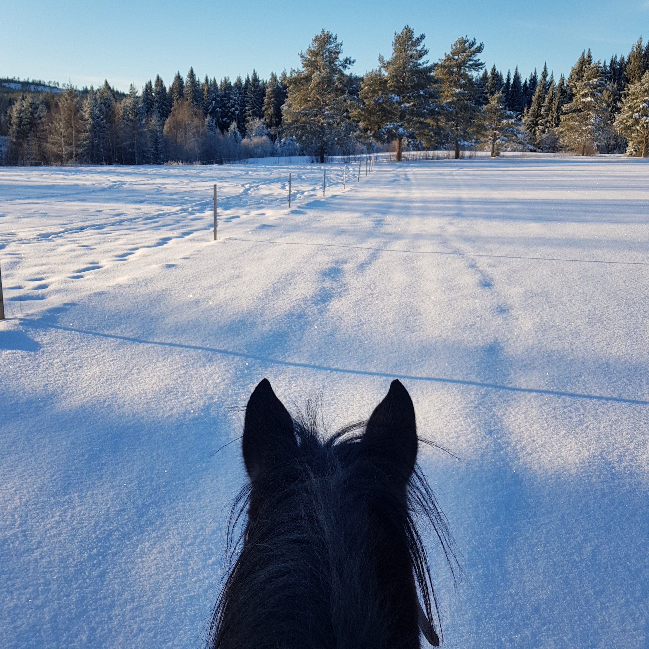 Jagade har vi som sagt inte blivit. Älgarna här verkar fatta att vi är ganska fredliga och håller sig lugna, även när vi korsar deras väg. Däremot har jag och en tjej lyckats få en åring efter oss ute i skogen. Vi gick lite off road som vi gör ibland och svängde upp bakom en gran. Där – bara meter framför oss, stod en åring och glodde på oss. För att inte störa girade jag snabbt till vänster för att gå runt älgen utan att störa, i alla fall inte störa mer än nödvändigt. Bara för att inse att älgen glatt följde efter oss. Jag var inte lika glad. Det tog många minuter att få den att stanna kvar på plats och sluta försöka följa med. Jag tjoade och tjimmade så dant att min stackars fjording till slut blev stressad av mig. Älgen bekom honom inte, men han kunde bara inte förstå varför jag skulle föra sådant oväsen och vifta med armarna så. Så jag fick sluta med det och vi red vidare i sakta mak, inte sätta fart för att stressa något. Till slut hade vi skakat av oss den ofrivilliga stalkern.
